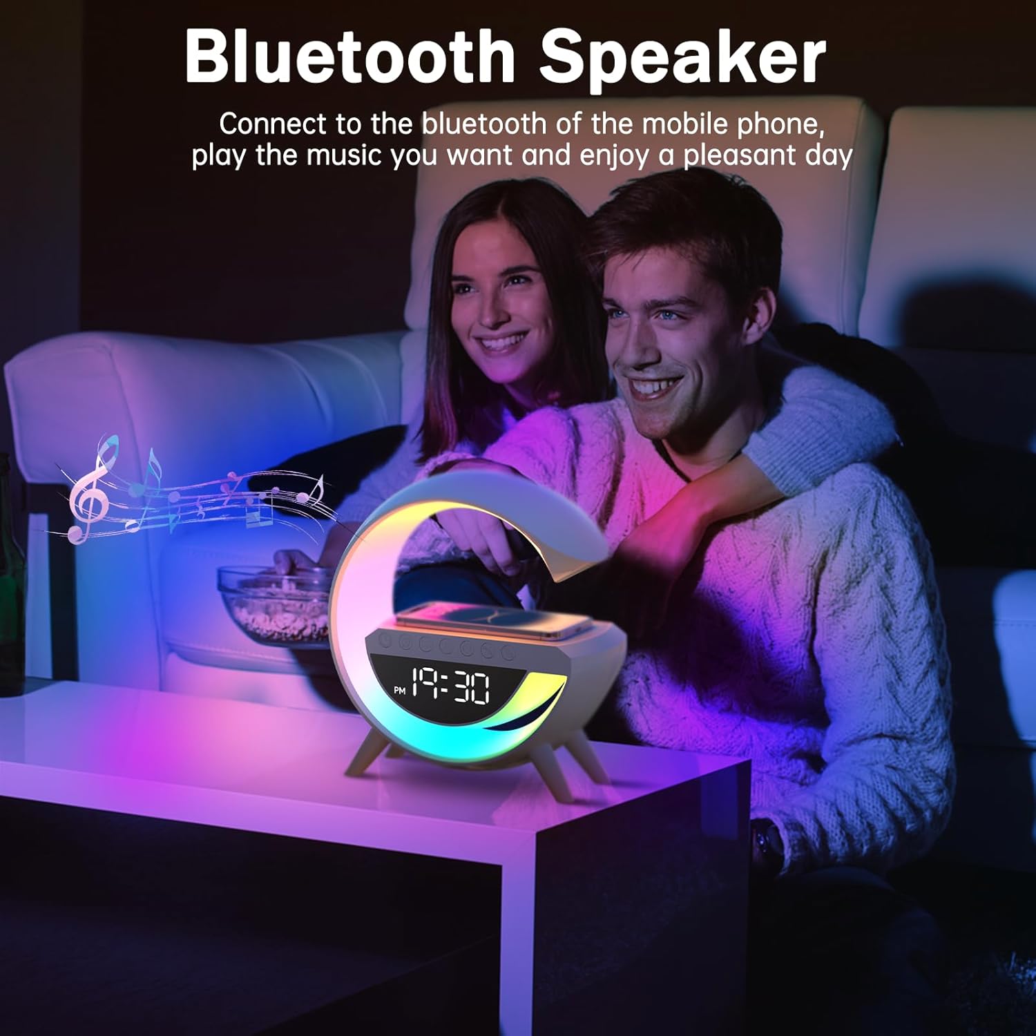 This multifunctional lamp is not just a light… it's your wireless charger, Bluetooth speaker, alarm clock, and mood lamp — all in one elegant design.