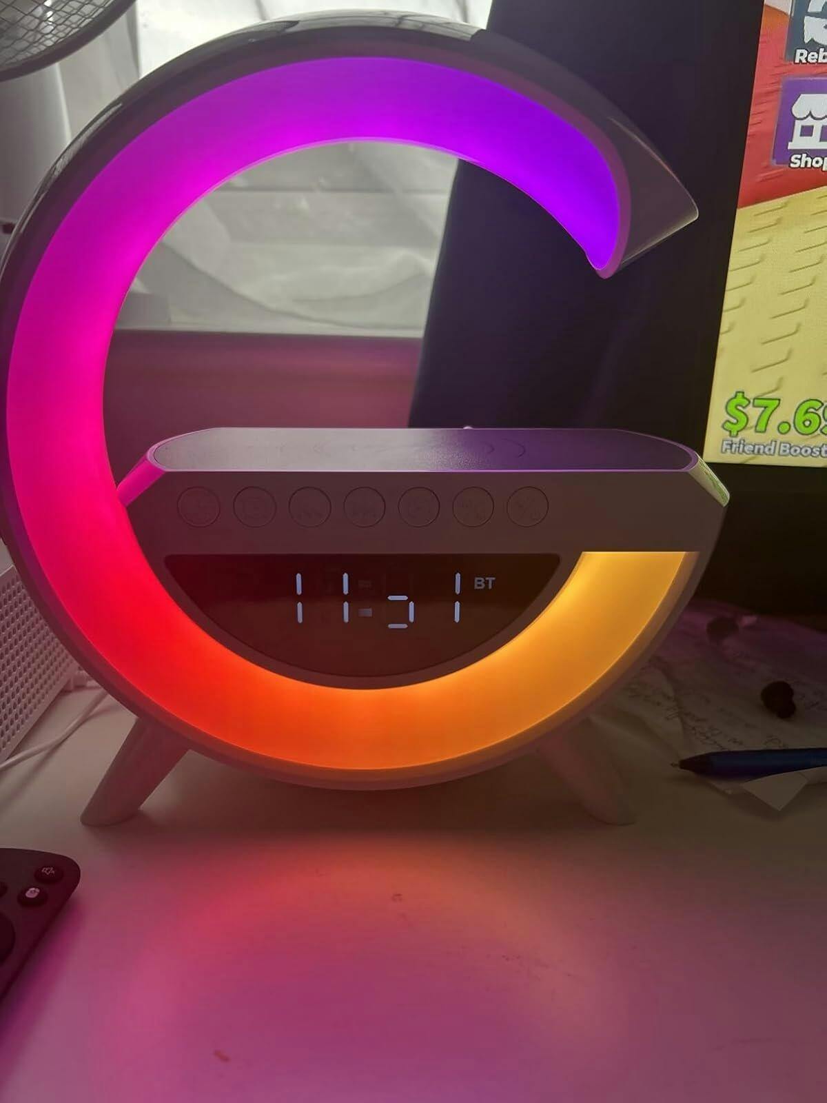 ✨ G-Shape LED Lamp with Wireless Charging, Bluetooth Speaker & Alarm Clock ✨