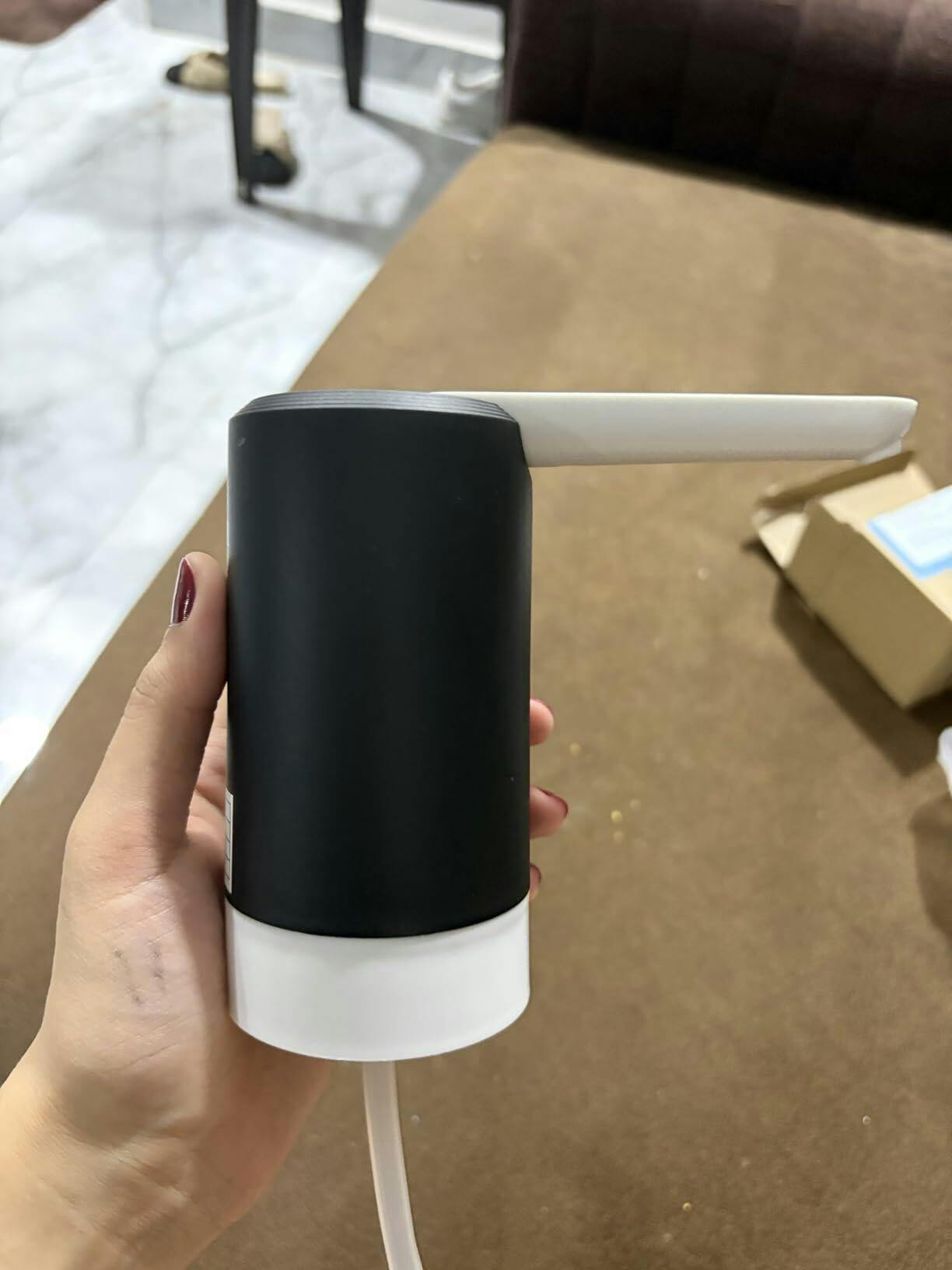 This water dispenser pump design with foldable arm, which can prevent dust and others. Just open the arm and press the switch button and you can get the water quickly, you can press the button again to stop pumping. the pump will auto stopped after 90s with not any action